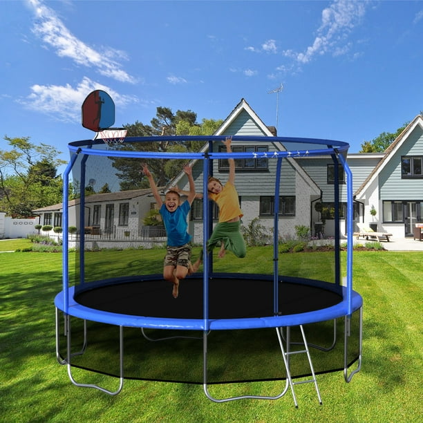 Giantex trampoline 12ft 14ft 15ft 16ft outdoor trampoline w safety enclosure net ladder jumping mat rust resistant poles outdoor backyard trampoline for kid adult 4 6 out of 5 stars 24 439 99 439. 12ft trampoline with enclosure. Rating 5 000002 out of 5 2 70 00.