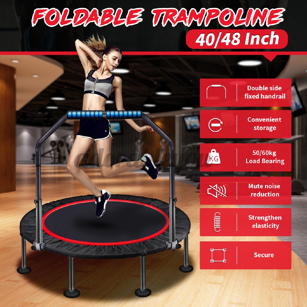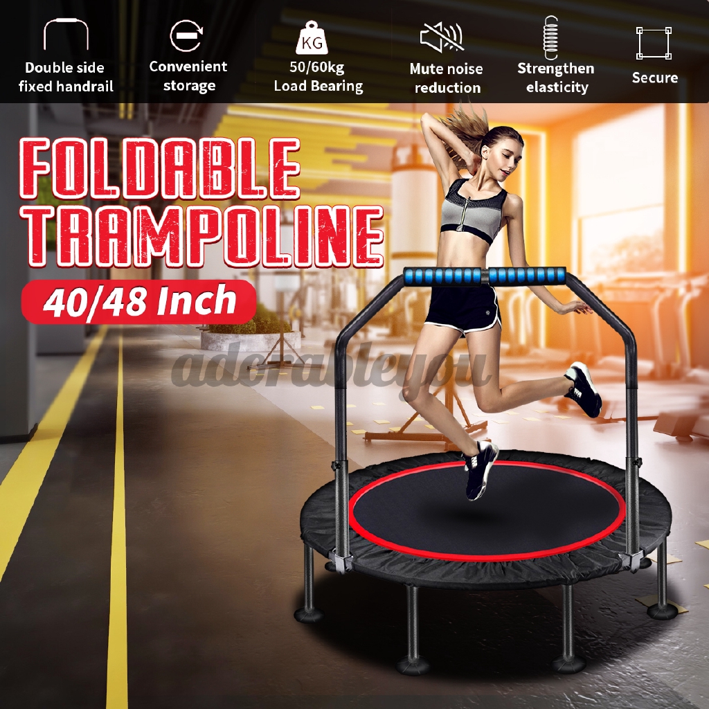 The 40 inch sunny health and fitness foldable trampoline was made for cardio exercising reasons. Bcan 40 foldable mini trampoline fitness rebounder with adjustable foam handle exercise trampoline for adults indoor garden workout max load 330lbs visit the bcan store. Build quality is an important aspect when it comes to purchasing home workout equipment.