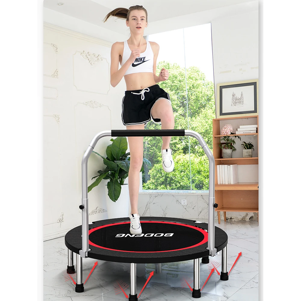 You ll be able to do just about any exercise you like since the wide padded safety handle provides balance support on one side of the machine. Trampoline rebounder with adjustable handle for adults fitness jumping cardio trainer workout by promecity 9 0 view product. Each piece on own box box size 105 x 10 x 40 cm 400 pcs 20 ft cont.