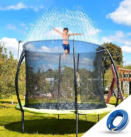 Trampoline sprinkler trampoline sprinkler for kids outdoor spary water park fun summer outdoor water games yard toys sprinklers backyard water park for boys girls 39 ft 4 2 out of 5 stars 484 15 88. Artbeck trampoline sprinkler outdoor trampoline water play sprinklers for kids fun water park summer toys trampoline accessories 39 ft black 4 1 out of 5 stars 230 37 99 37.