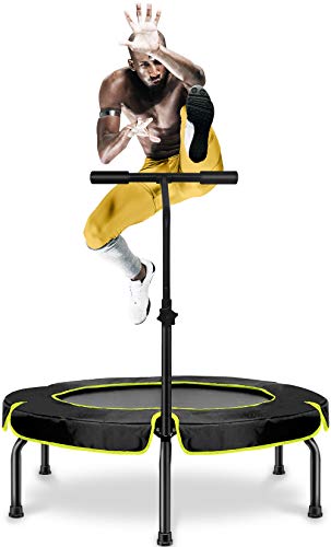 The additional metal bar brings more variety to your workout routine. 10 minutes bounce exercise equals 1 hour jogging 30 minutes cycling or 20 minutes swimming. The best trampoline for kids it comes in a padded frame cover and a heavy duty polypropylene jumping mat and can bear weight till 150 pounds.