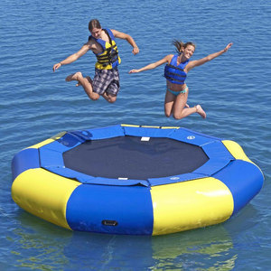 Water trampolines are large floating bouncing platforms that are easy to assemble and provide hours of fun on lakes or rivers. About 2 of these are water play equipment. Prior to inflation check the cable lock clamp which connects the wire under the water bouncer to ensure the jump surface is tight.