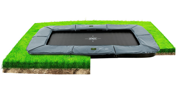 Exit toys is the most up to date and trendy outdoor toy brand that directly addresses children with their great leisure products and challenges them to try out everything out there exit toys is made in holland guaranteeing quality and performance at a fair price. Underground in ground trampoline reviews cost installation trampoline in ground ring kits trampoline enterré super ground level 305 cm jardin en 2019 exit supreme rectangular ground level trampoline 244x427cm green orbit flat family trampolines akrobat trampoline in ground ring kits. The trampoline stands completely on ground level for a lovely and safe result.