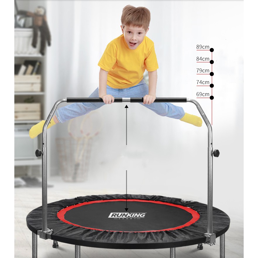 Tengma indoor exercise trampoline 40 48 inch folding fitness trampoline with adjustable handrail and safety pad exercise mini trampoline rebounder for indoor garden workout kids adults 69 89 85 89.