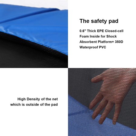 Kids will have a blast outdoors with jump power 14 round trampoline with safety enclosure net. Includes a sturdy net foam sleeves for pole frames and all the hardware. This net enclosure combo is designed for trampolines with no existing enclosure net fits 14 trampoline with 4 u shaped legs.