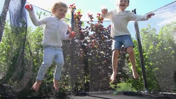 This feature is not available right now. Children in shorts jumping on a trampoline. Kid breaks the ice on frozen trampoline in one epic bounce 1000 fps girls on trampolines tribute.