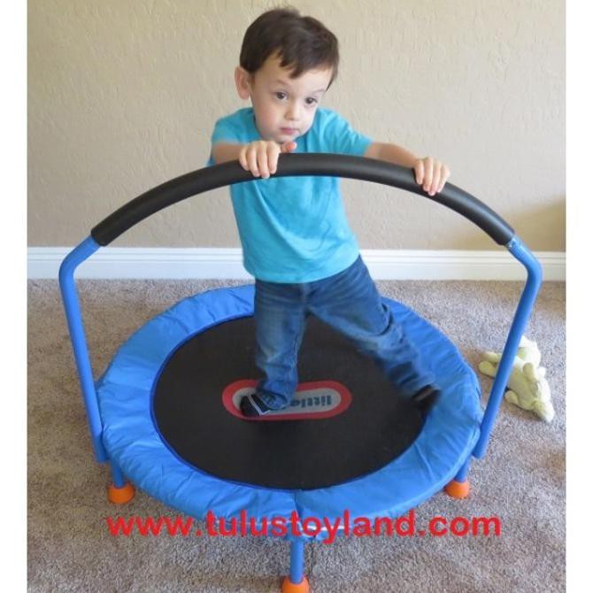 Product title little tikes easy store 3 foot trampoline with hand rail blue red average rating. The trampoline is made from durable metal and plastic and the entire frame and the handle bar are. Active play baby toys and gear playhouses ride ons and wagons kitchens and workshops.