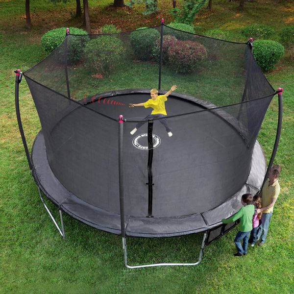 Oval trampoline 15 x 10. It is designed with innovative safety features making it one of the highest quality and safest trampolines available. A patented no gap enclosure system which interlocks the jump mat and enclosure net at each spring eliminating dangerous gaps patent re45 182. 10 x 15ft oval telstar trampolines vortex black edition package 469 00.