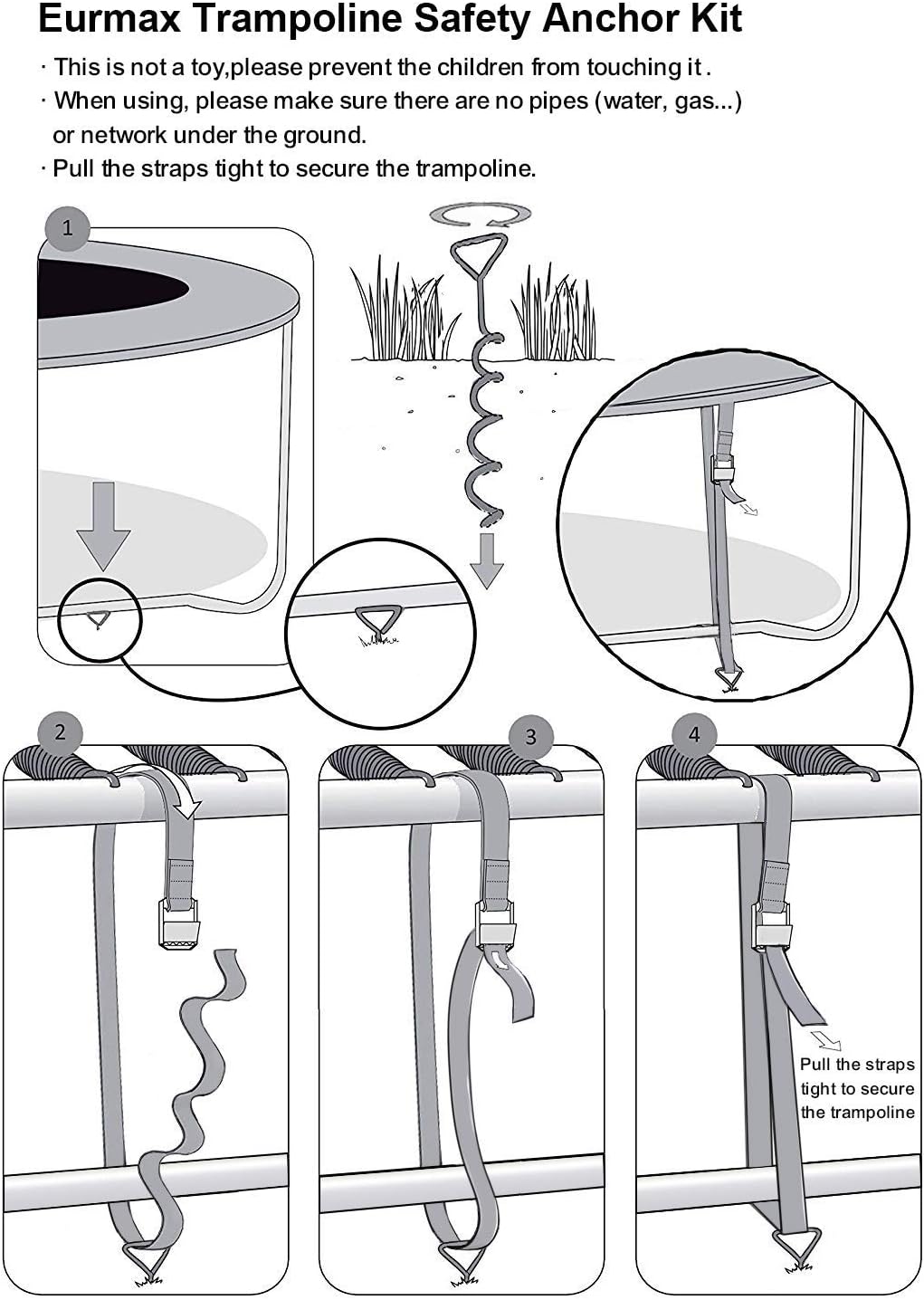 Parts Sports Outdoors Eurmax Trampoline Stakes Heavy Duty Trampoline Parts Corkscrew Shape Steel Stakes Anchor Kit For Trampolines