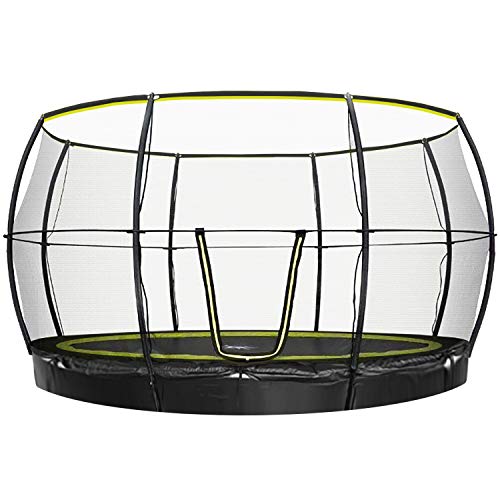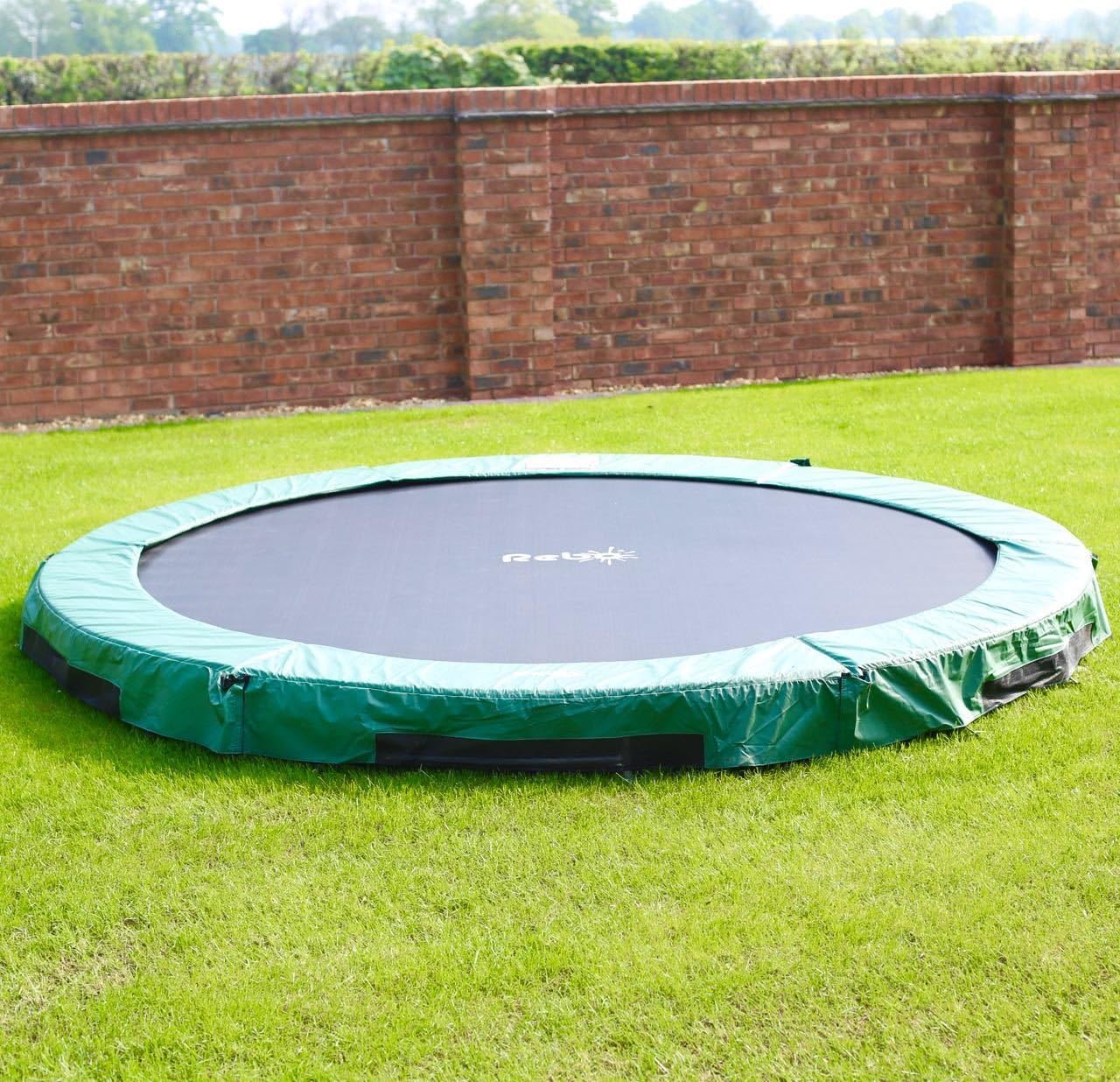 Following in the footsteps of their other popular inground trampoline the new rebo inground base jump has been designed so the body of the trampoline lies flush with the ground around it just as the original does however this new version has been adapted to work with the distinctive halo 2 safety enclosure that gives the above ground trampolines in the base jump range their distinctive look. If you have a number of children in your family bear in mind that this model is only intended for use by children aged six years and older. Here is the link to buy this trampoline gen iii 12 in ground trampoline with blue pad.