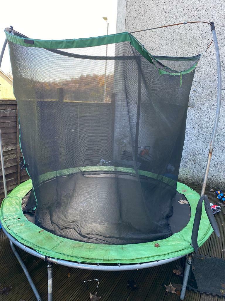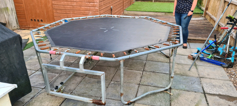 Trying to figure out if i should sell the trampoline or just sell the frame as scrap metal. Frame is approximately 3 54cm or 11 7 feet in diameter and it has lost some of its strength that bent it when trying to put on the new high tension mat. Any feedback very much appreciated.