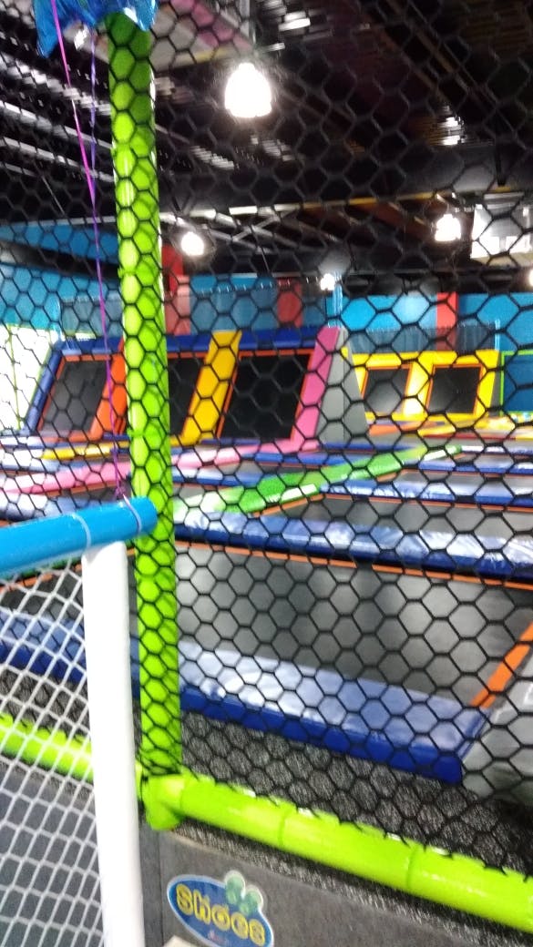 Sky park kids trampoline park 9610 jensen dr houston tx 77093. My daughter spent more time there than on the trampolines. They have a bar for adults 4d movies theater snacks rock wall batting cages and more.