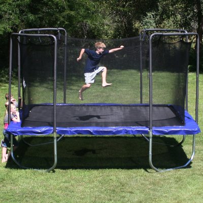 Family fun on a quality trampoline from skywalker trampolines. Premium 17 olympic sized rectangle trampoline with enclosure. A patented no gap enclosure system interlocks the jump mat and enclosure net at each spring eliminating dangerous gaps and giving parents peace of mind patent re45 182.