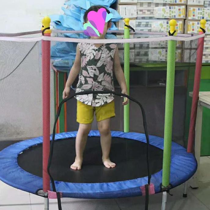 The animal jam logo is on the trampoline net. It has ten different varieties. Aj jump is an exciting mobile game that can be linked to an animal jam player account to further the animal jam fun.