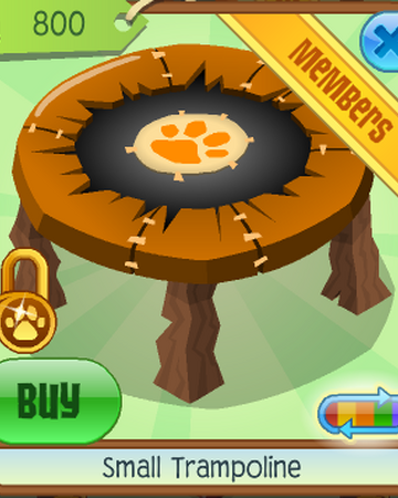 Small trampoline animal jam. This item is similar to the happy emote. The small trampoline is a members only den item. Stick two chocolate sprinkles in your banana for the eyes.