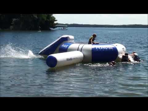 There is an included water launcher as well as a balance log. The rave sports splash zone plus is from commercial grade and reinforced material. Rave eclipse aj 120 trampoline.