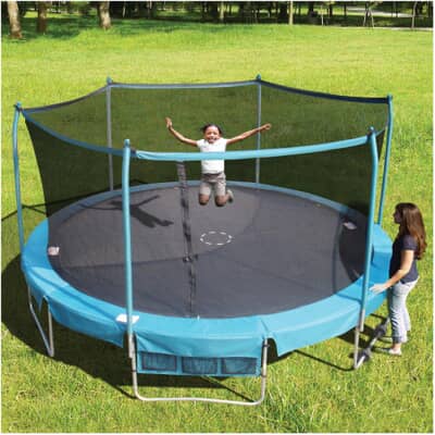 8 trampoline with enclosure 239 99. The 7 my first jump n swing features our standard uv resistant jumping mat with silk screened centre target pe netting protective enclosure with a full zipper. Trainor sports 12 trampoline and enclosure combo is easy to set up.