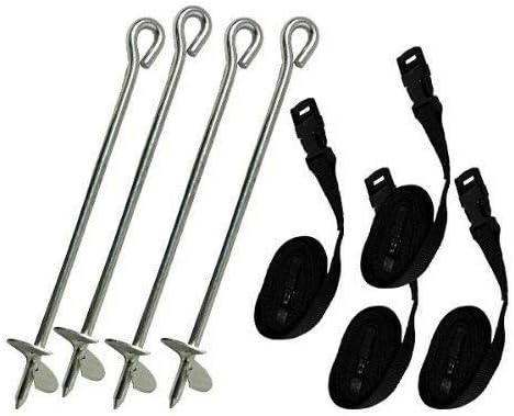 Trampoline anchor kit the warehouse. This kit features 4 heavy duty straps and 4 augers that help to tie down the legs of the trampoline safely. Geetramp anchor kit large. We are passionate about safety and will only sell trampolines with full safety enclosures and padding and we aim to have the largest variety of spring size weight combinations available so you can choose.
