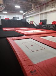 We are the only trampoline park in alabama with fully padded decks all are trampolines have a second safety net under each trampoline. All trampolines have 2 inch thick soft padding all super tramps have 6 inch thick soft padding our trampoline are made in the usa and are required to have higher standards than foreign made trampolines. We have dodgeball kids court foam pits a battle beam rock walls and ninja course the warp wall an inflatable virtual reality.