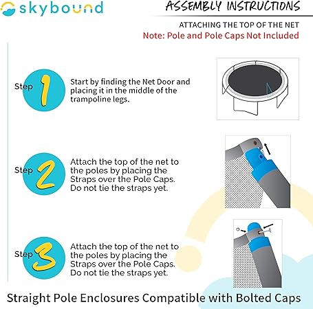 Replacement Trampoline Safety Net For 12 Ft Frames W 6 Straight Enclosure Poles And Pole Caps W Bolts Compatible W Bravo Airzone Variflex And Many Others Walmart Com Walmart Com