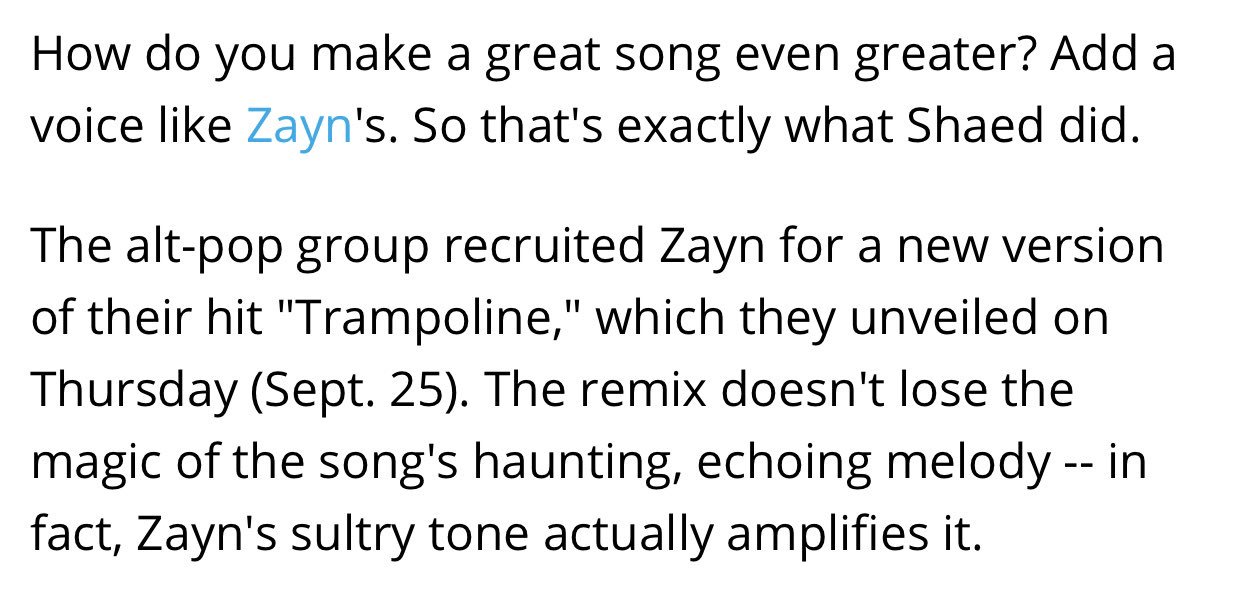 That remix was released on the 26th of september 2019. Zayn hinted the song on his twitter. Deutsche übersetzung des songtexts für trampoline by shaed.