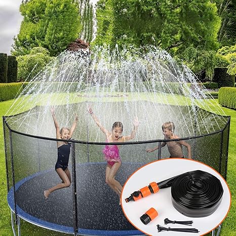 Trampoline sprinklers toy multi function the sprinkler can not only be a water spray toy for children but also can water the lawn and cool the environment safe durable trampoline. 25 x long fixing strap. For trampoline sprinkler spray water park kid fun summer outdoor water game.
