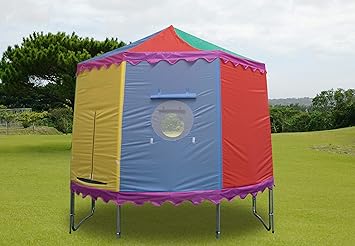 Having a trampoline canopy will stop any debris or leaves being blown onto your product and in the sun will provide some shade and uv protection against harmful rays. This trampoline tent is a great solution for all those who want to enjoy their trampoline it comes in two sizes that we managed to find the 8ft trampoline with enclosure tent and the 10ft trampoline with enclosure tent. Bright and colourful our trampoline tent top designs bring extra fun to your bouncing experience and we have a range to fit rectangle oval and circular frames.