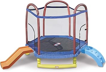 Trampoline with slide uk. The ramp slide makes it easy for jumpers of all sizes to crawl climb or run up to the trampoline mat surface and then doubles as a trampoline slide to conveniently scamper off. We take trampoline safety as seriously as trampoline fun that s why we are members of rospa 9. A child s trampoline is much more than just a way to burn off excess energy while having fun.
