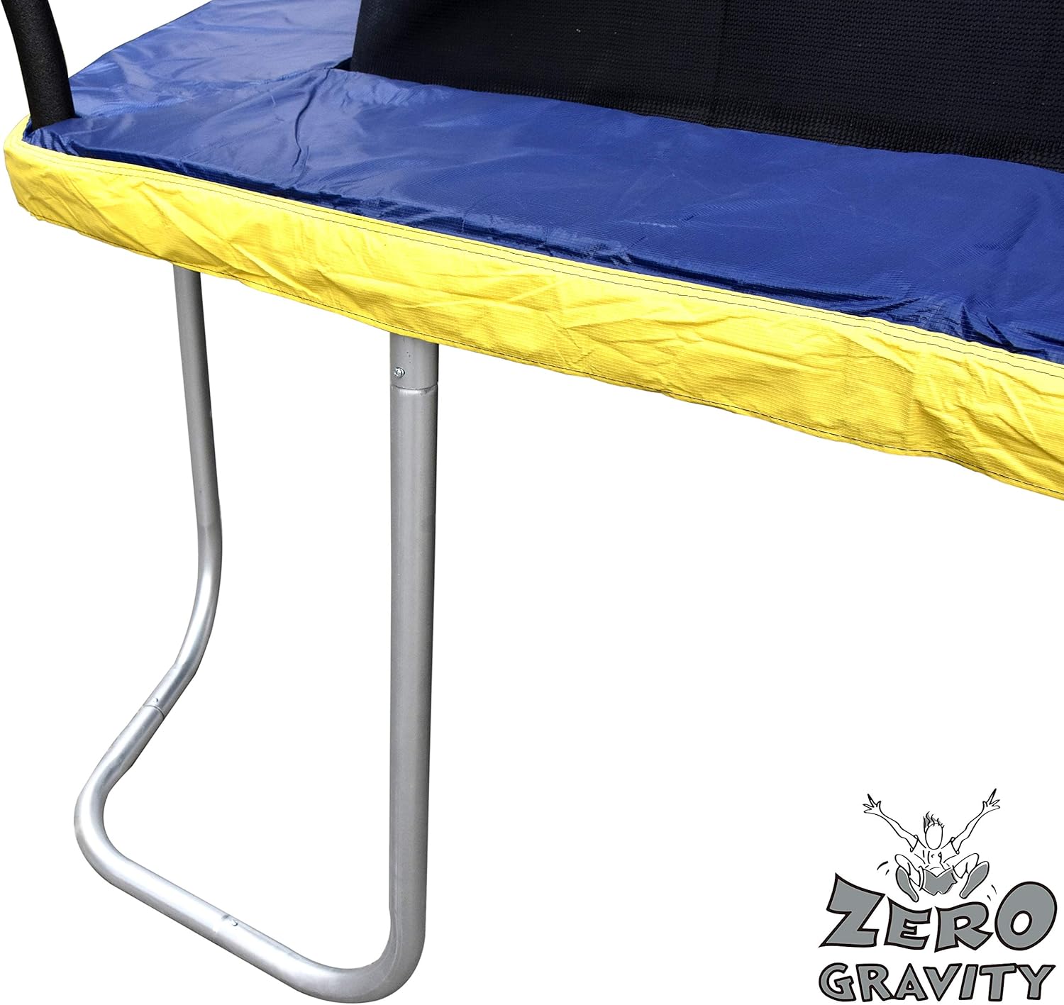 Zero gravity rectangular trampoline. It features a patented weldless frame and state of the art safety enclosure. Zero gravity ultima 5 15ft x 10ft rectangular trampoline and enclosure. The rectangular shape means that the bounce is focussed on the middle of the trampoline bed usually where you will find a cross or logo.